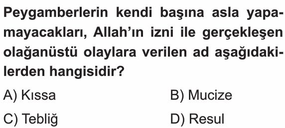 6. Sınıf Peygamberlerin Özellikleri ve Görevleri Test 3