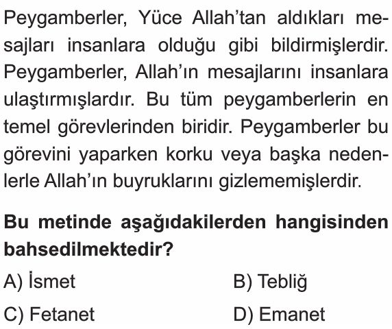 6. Sınıf Peygamberlerin Özellikleri ve Görevleri Test 3