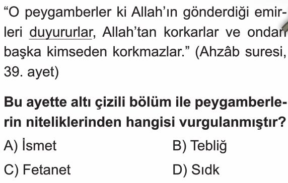 6. Sınıf Peygamberlerin Özellikleri ve Görevleri Test 3