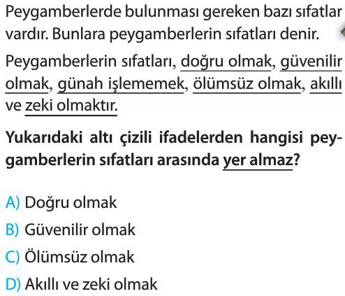 6. Sınıf Peygamberlerin Özellikleri ve Görevleri Test 4