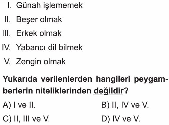 6. Sınıf Peygamberlerin Özellikleri ve Görevleri Test 4