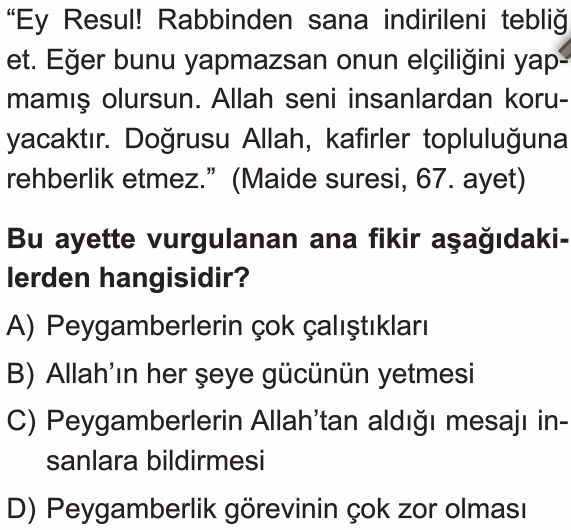6. Sınıf Peygamberlerin Özellikleri ve Görevleri Test 4