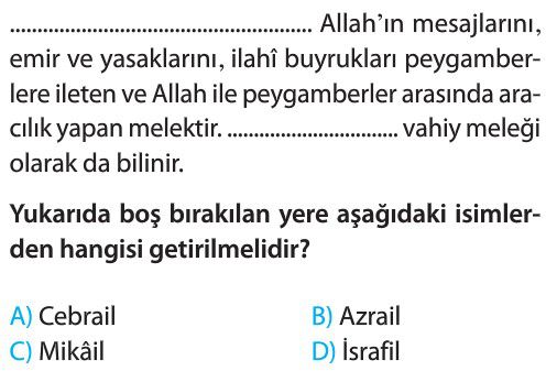 📝6. Sınıf Vahiy ve Vahyin Gönderiliş Amacı Test 4