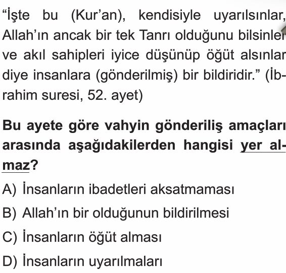 📝6. Sınıf Vahiy ve Vahyin Gönderiliş Amacı Test 4