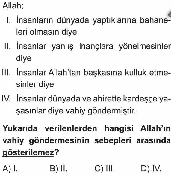 📝6. Sınıf Vahiy ve Vahyin Gönderiliş Amacı Test 4