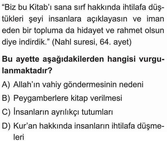 📝6. Sınıf Vahiy ve Vahyin Gönderiliş Amacı Test 4