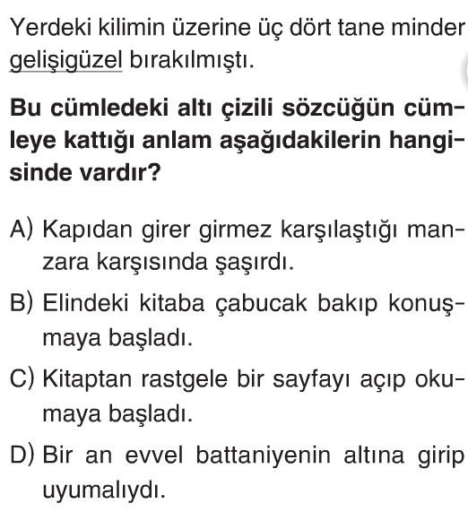 5. Sınıf Sözcükte Anlam Test 3