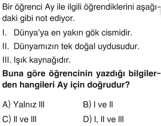 📝5. Sınıf Ay'ın Yapısı ve Özellikleri Test 2
