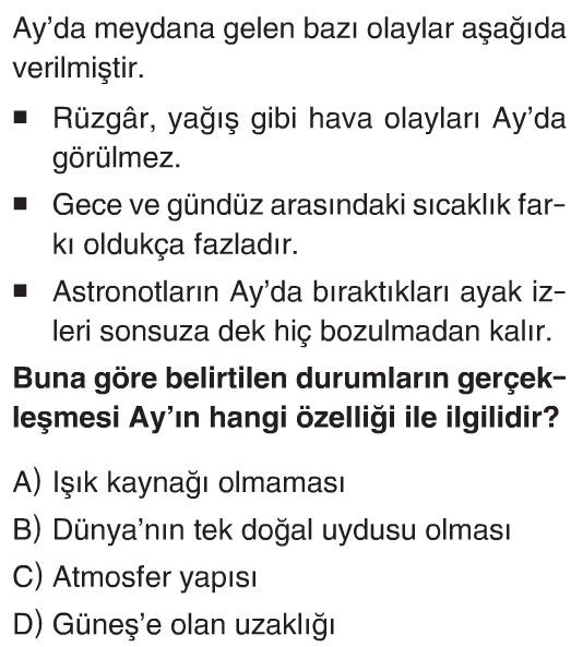 📝5. Sınıf Ay'ın Yapısı ve Özellikleri Test 2