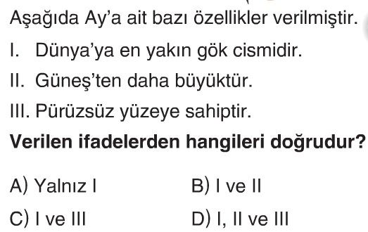 📝5. Sınıf Ay'ın Yapısı ve Özellikleri Test 3