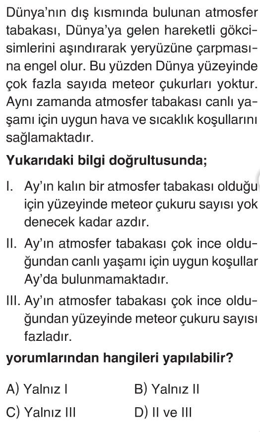 📝5. Sınıf Ay'ın Yapısı ve Özellikleri Test 3
