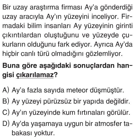 📝5. Sınıf Ay'ın Yapısı ve Özellikleri Test 3