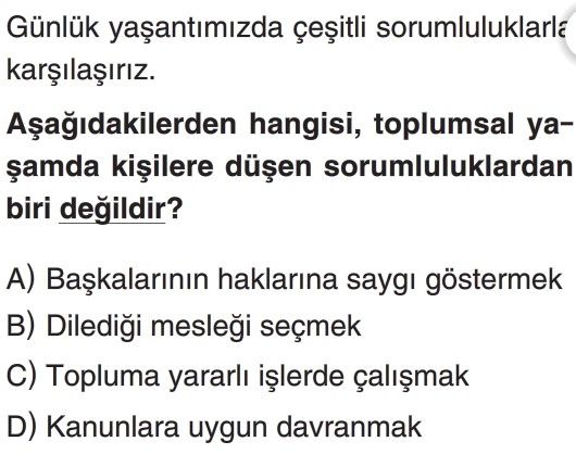 📝5. Sınıf Haklarımı ve Sorumluluklarımı Biliyorum Test 4