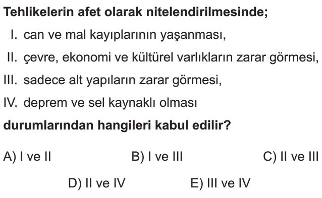 9. Sınıf Tehlike, Risk ve Afet Test 2