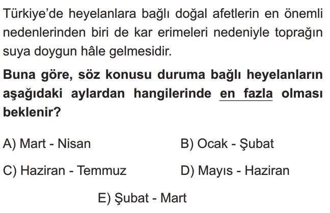 9. Sınıf Afet Türleri Test 4