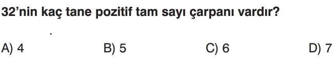 📝8. Sınıf Pozitif Tam Sayıların Pozitif Tam Sayı Çarpanları Test 9