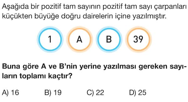 8. Sınıf Pozitif Tam Sayıların Pozitif Tam Sayı Çarpanları Test 4