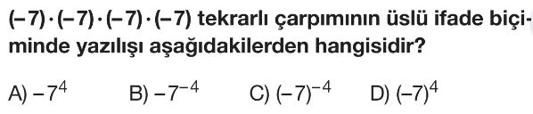 8. Sınıf Tam Sayıların Tam Sayı Kuvvetleri Test 7