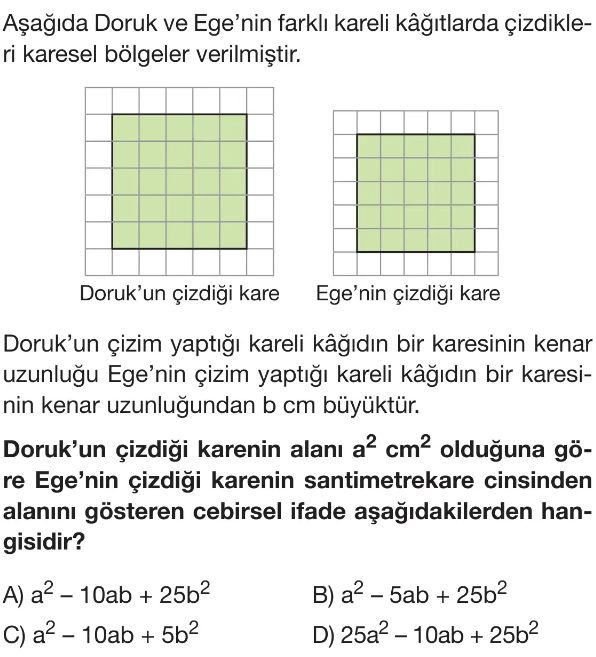 8. Sınıf Cebirsel İfadeleri Çarpanlara Ayırma Test 5