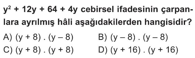 8. Sınıf Cebirsel İfadeleri Çarpanlara Ayırma Test 5