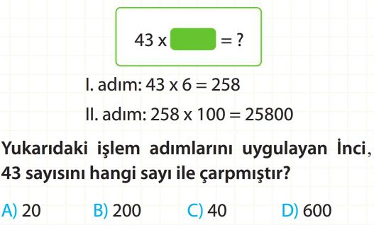 4. Sınıf Doğal Sayılarla Çarpma ve Bölme İşlemi Test 5