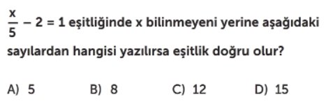 8. Sınıf Birinci Dereceden Bir Bilinmeyenli Denklemler (Denklem Çözme) Test 2