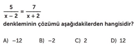 8. Sınıf Birinci Dereceden Bir Bilinmeyenli Denklemler (Denklem Çözme) Test 3