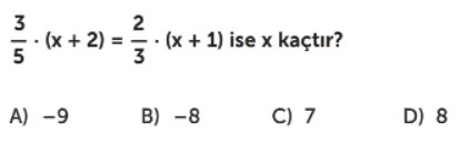 📝8. Sınıf Birinci Dereceden Bir Bilinmeyenli Denklemler (Denklem Çözme) Test 8