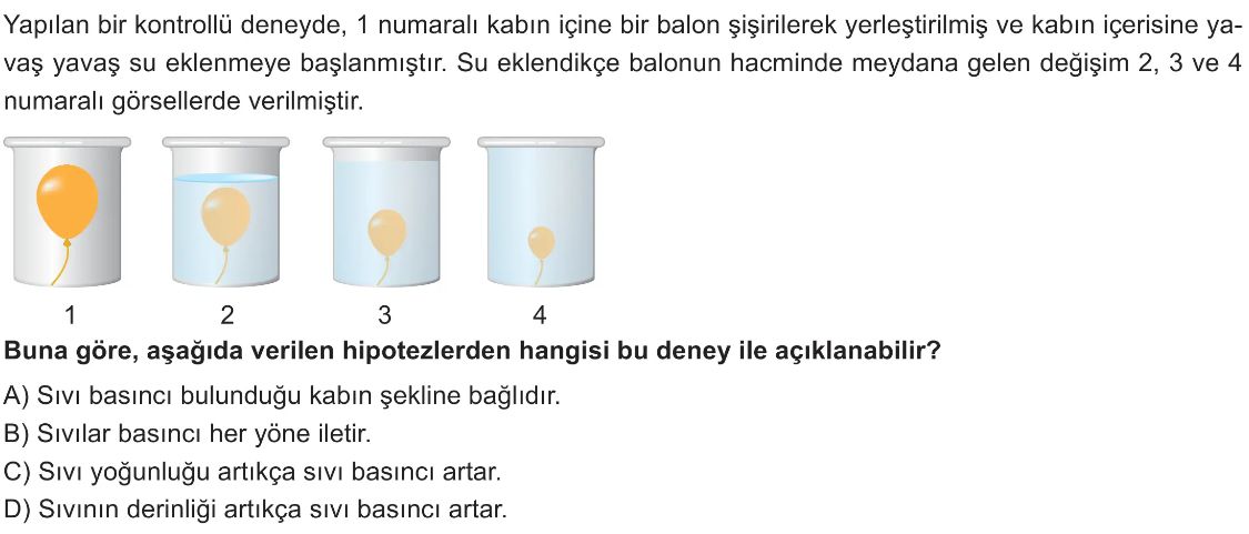 8. Sınıf Basınç Ünite Değerlendirme Test 4