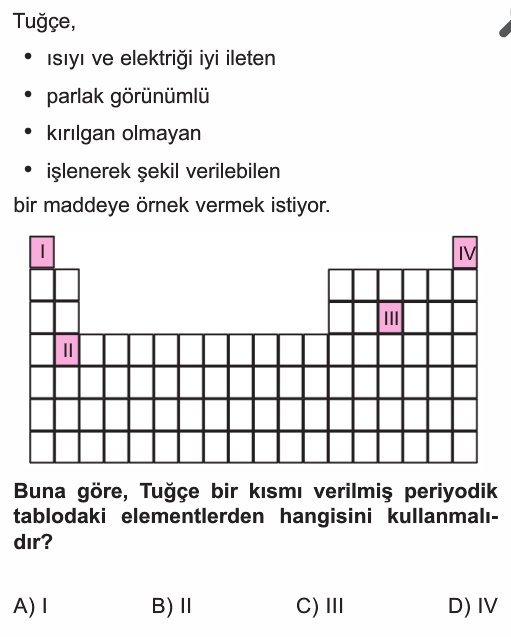 8. Sınıf Periyodik Sistem Test 11