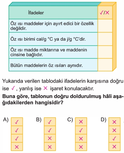 8. Sınıf Maddenin Isı ile Etkileşimi Test 5