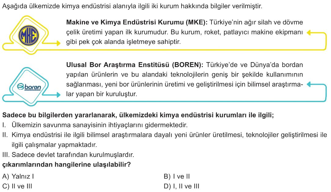 8. Sınıf Türkiye'de Kimya Endüstrisi Test 2