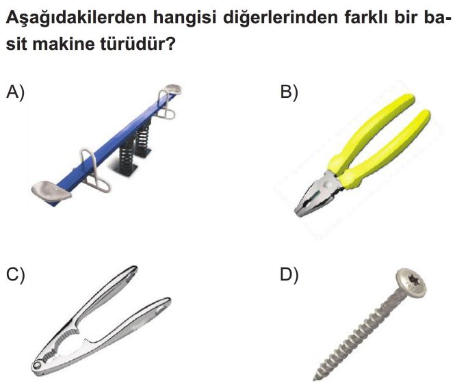 8. Sınıf Basit Makineler Ünite Değerlendirme Test 1