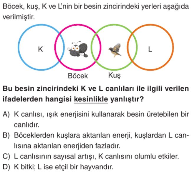 8. Sınıf Besin Zinciri ve Enerji Akışı Test 5