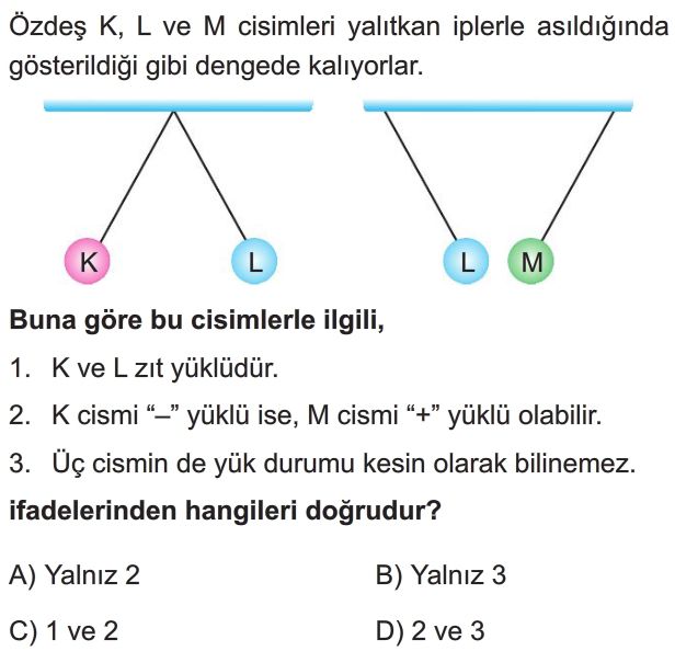 📝8. Sınıf Elektrik Yükleri ve Elektriklenme Test 3