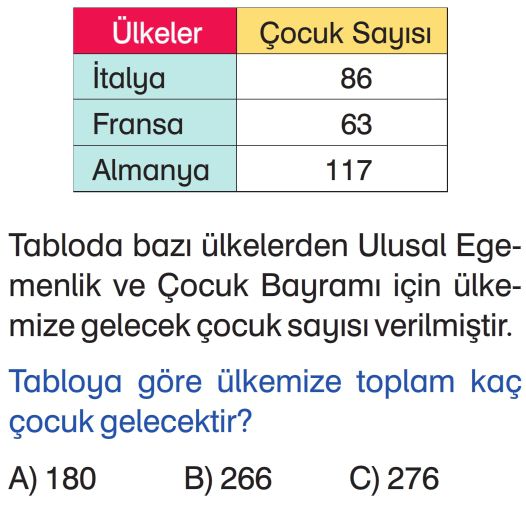 3. Sınıf Doğal Sayılarla Toplama İşlemi Test 5