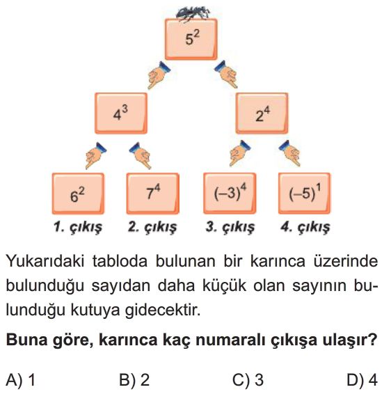 📝7. Sınıf Tam Sayıların Kendileri ile Tekrarlı Çarpımı (Kuvveti) Test 7