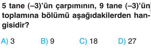 📝7. Sınıf Tam Sayıların Kendileri ile Tekrarlı Çarpımı (Kuvveti) Test 5
