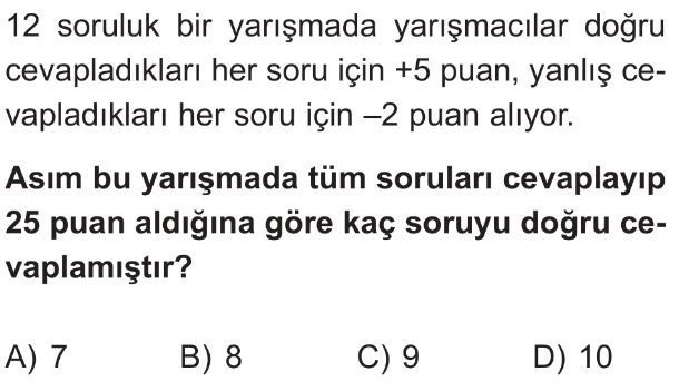 📝7. Sınıf Tam Sayı Problemleri Test 8