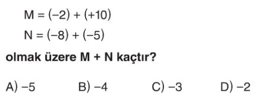 7. Sınıf Tam Sayılarla İşlemler Ünite Değerlendirme Test 3