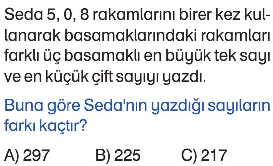 3. Sınıf Doğal Sayılarla Çıkarma İşlemi Test 4