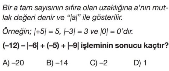 📝7. Sınıf Tam Sayılarla İşlemler Ünite Değerlendirme Test 14