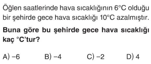 7. Sınıf Tam Sayılarla İşlemler Ünite Değerlendirme Test 10