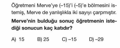📝7. Sınıf Tam Sayılarla İşlemler Ünite Değerlendirme Test 15
