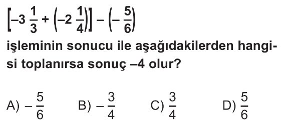 7. Sınıf Rasyonel Sayılarla Toplama ve Çıkarma İşlemleri Test 10