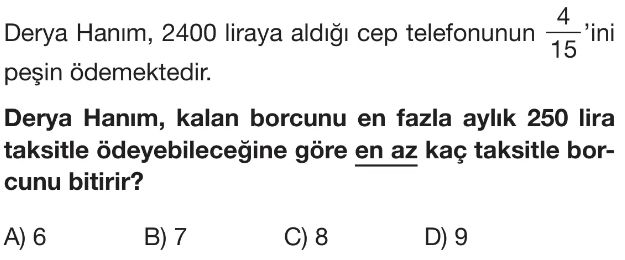 7. Sınıf Rasyonel Sayılar ile İlgili Problemler Test 3