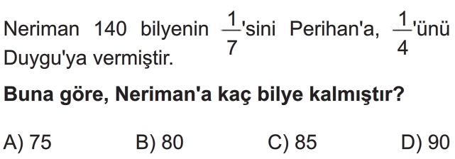 7. Sınıf Rasyonel Sayılar ile İlgili Problemler Test 5