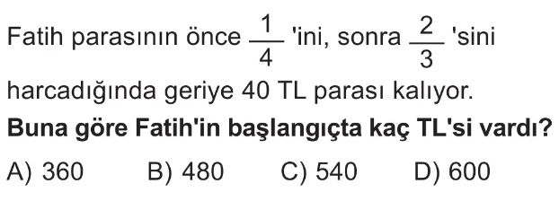 📝7. Sınıf Rasyonel Sayılar ile İlgili Problemler Test 5