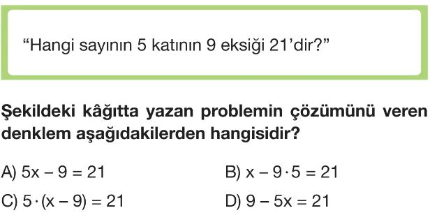 📝7. Sınıf Birinci Dereceden Bir Bilinmeyenli Denklemi Tanıma ve Kurma - Denklem Çözümü Test 9