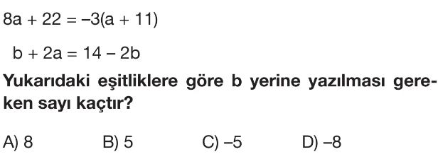 📝7. Sınıf Birinci Dereceden Bir Bilinmeyenli Denklemi Tanıma ve Kurma - Denklem Çözümü Test 8